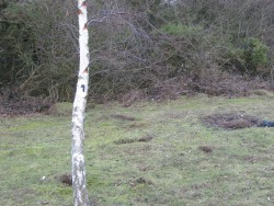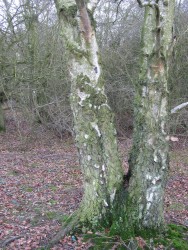 From F and H at CC, walk or drive to WH Car Park. Take main path. Look for Logica Ls on the route. At bench on left turn left. Take path downhill through trees. Pass a three-trunked silver birch. Ignore path to left. Once it opens out on the left, take eighty paces to a single birch. Turn right into trees. See another single silver birch and a two-trunked one behind it. Between these the casket is buried less than one foot below the surface.